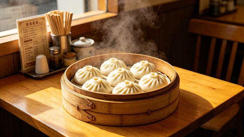 蒸制环节将馅料包入面皮中捏褶成型,进行二次醒发约20分钟。水开后上锅,大火蒸20分钟即可出锅。