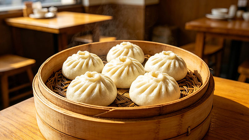手工包制与蒸制由于馅料呈稀状,擀皮时必须做到边薄底厚,否则极易漏馅。蒸制时讲究“开水上屉”,且必须严格控制时间(通常为8分钟),对火候和蒸汽的要求非常严苛。