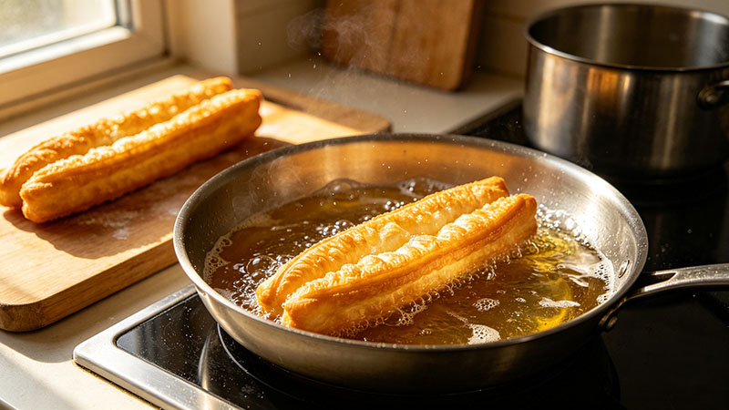 - 炸制技巧:油温控制在180-200℃,下锅前将生胚拉长至原长度的1.5倍。入锅后3秒内不要翻动,待定型后用筷子快速拨动使其均匀受热。