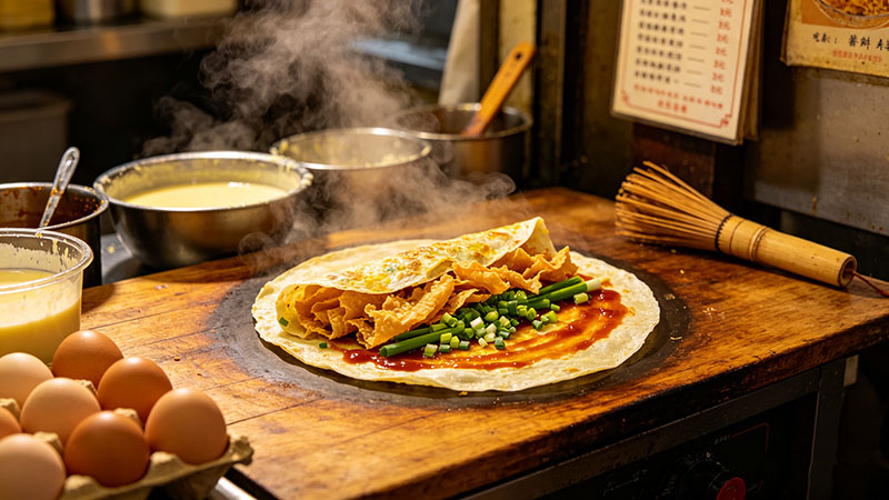 - 课程亮点:专注天津特色煎饼果子,教授薄脆、油条、果篦儿等多种搭配,提供原料采购渠道与成本分析。