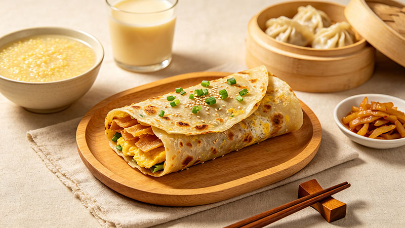 - 需掌握“一勺面糊、45度刮板、快速画圈”摊制技巧,确保煎饼厚度≤1mm。