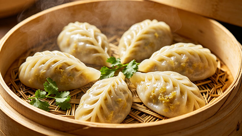 - 包制花样与蒸制:练习月牙饺、柳叶饺、冠顶饺等多种造型。掌握蒸制时间,一般标准大小的酸菜蒸饺上汽后蒸15分钟即可,若个头较大或火力不足则需延长至20分钟,并学会关火焖3分钟防止回缩的技巧。