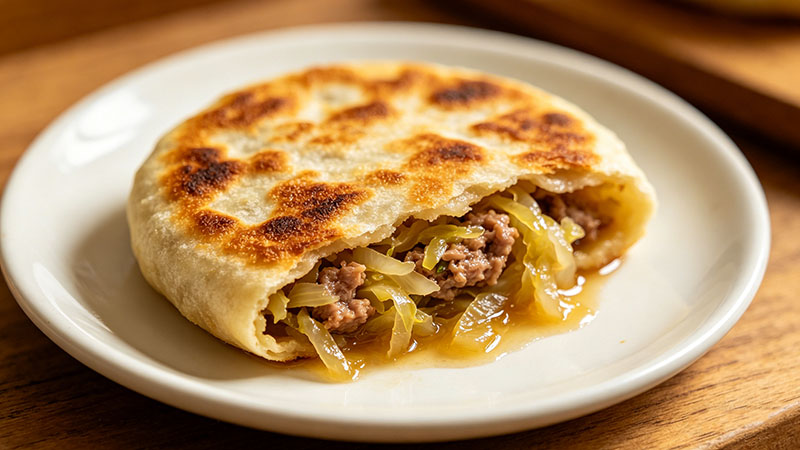 - 烙制技术烙制过程讲究火候与技巧。平底锅或电饼铛预热刷油,放入饼坯后中小火烙至一面定型金黄,翻面后沿锅边淋入少量清水,迅速盖盖焖烙。利用水蒸气使内部馅料熟透,最后开盖收干水汽,烙至两面金黄酥脆即可。