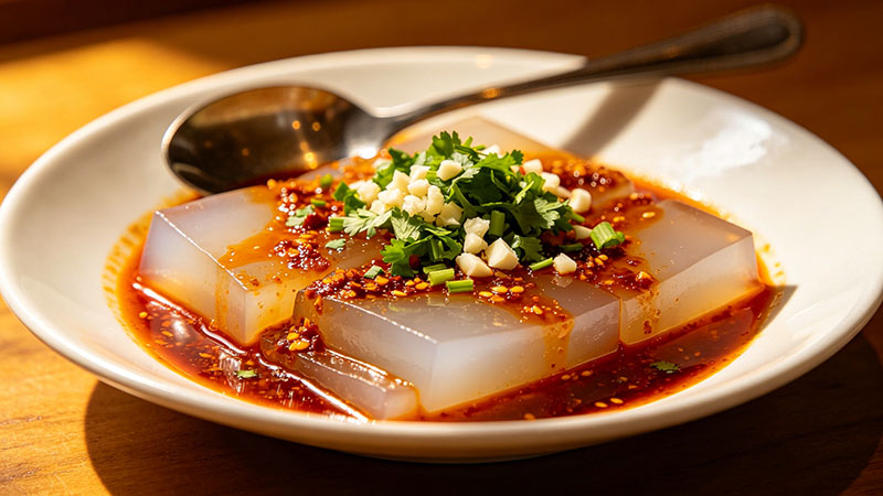 - 成品出品与刀工:掌握地道的“旋子”切粉技巧,将凉粉刮成粗细均匀的条状,使其更好地吸附调料。同时学习不同味型(如麻辣、酸辣、酱香)的拌制方法。