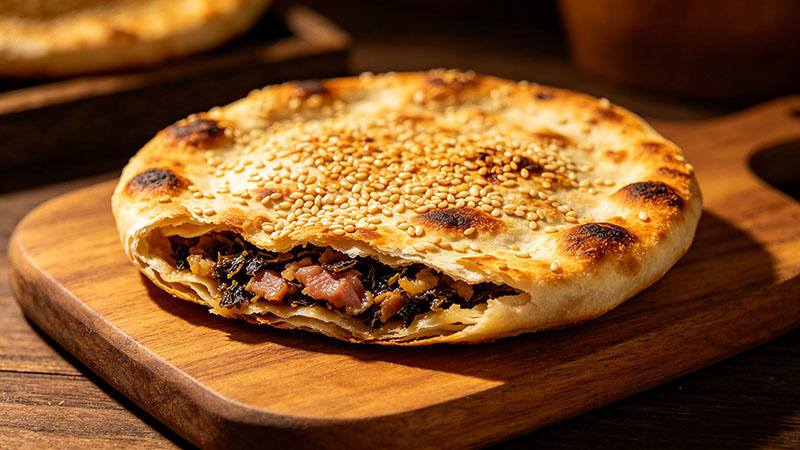 - 核心课程:涵盖面团发酵、梅干菜肉馅调制、饼坯擀制、炭火烤制等全流程。学员需学习传统老面发酵技法、梅干菜三蒸三晒处理工艺,以及烧饼桶(木桶外胆+陶鼎内胆)的使用方法。