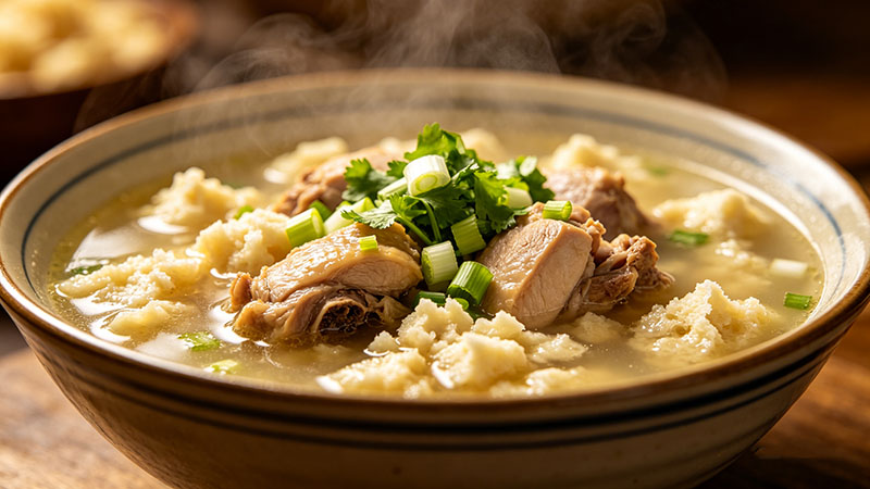 - 高汤熬制:鸡架、猪骨加水大火煮沸,撇去浮沫后转小火炖3-4小时,至汤色清亮。