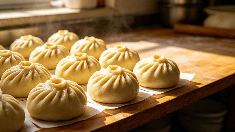 - 捏褶手法:练习提褶、收口,确保包子外观美观,如菊花状。